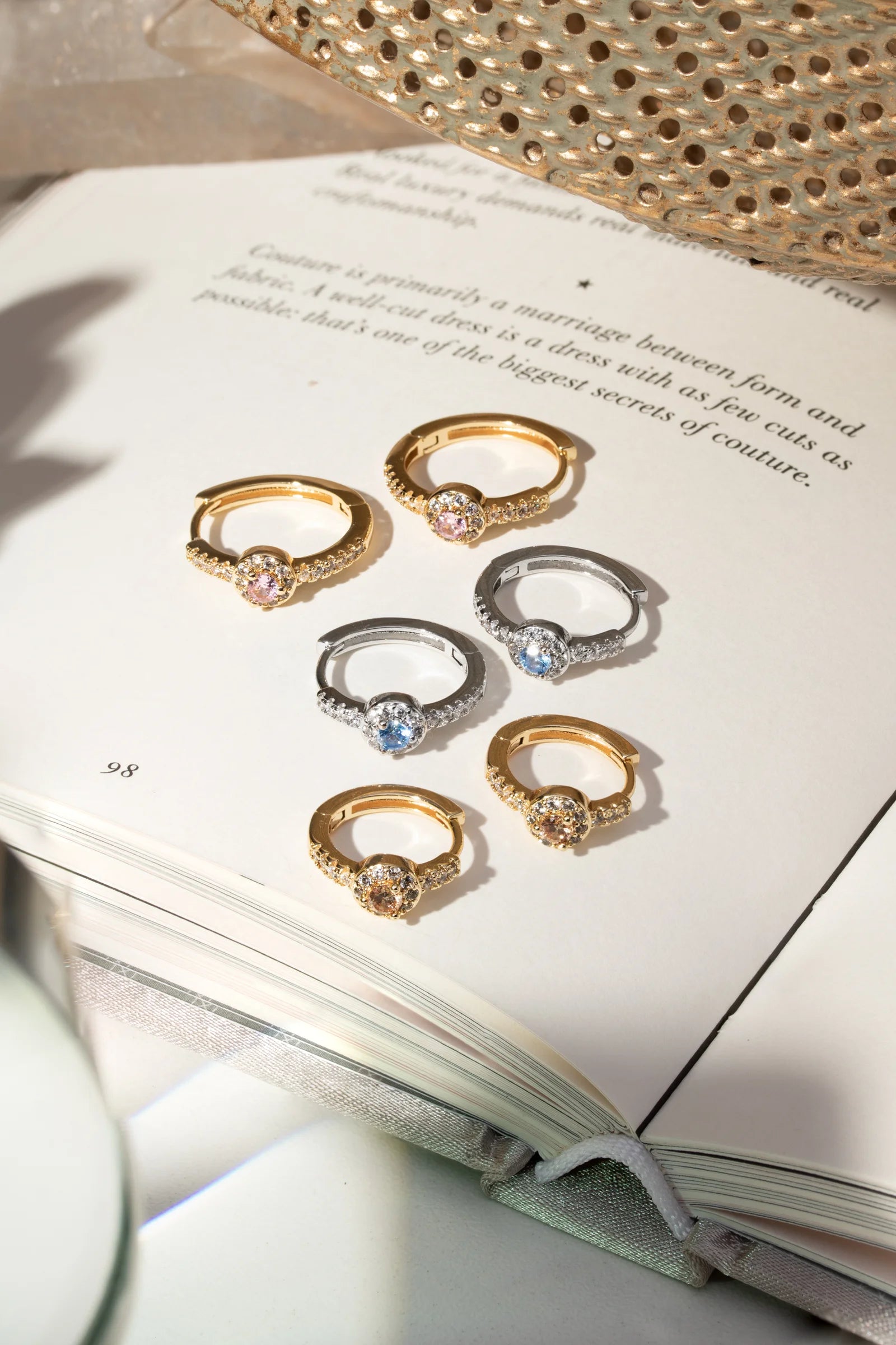 Citrine Crystal 14mm/Blue Topaz 16mm/Rose Quartz 18mm Earrings