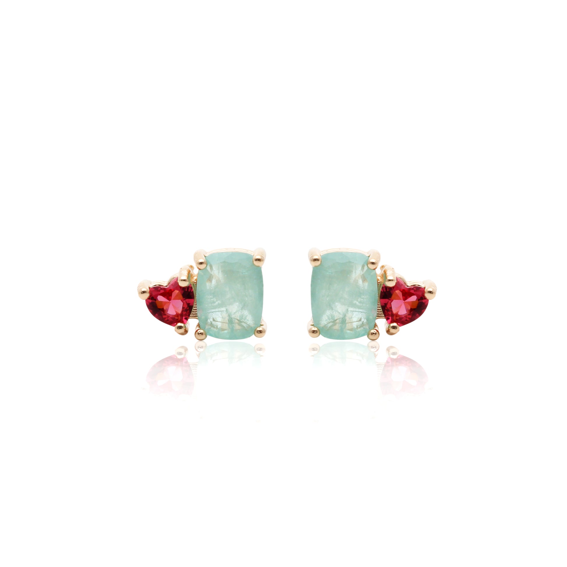 Tourmaline Fusion Stone and Pink Tourmaline Heart Crystal Earrings