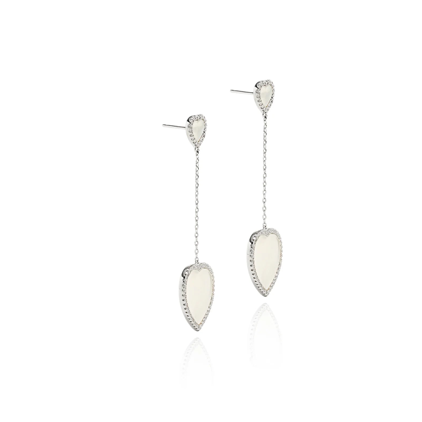 Elevate your elegance with these Mother of Pearl & White Zircon Heart Earrings crafted in sterling silver 925.