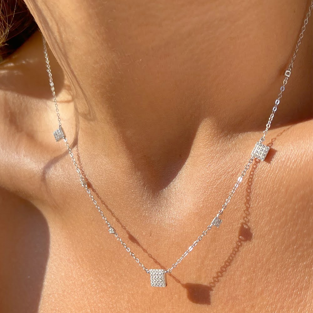 Fall in love with this beautifully crafted 925 Silver White Rhodium Plated Necklace, featuring stunning White Cubic Zircons for an eye-catching sparkle.
