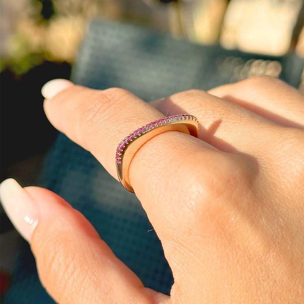 This beautiful red cubic zircon ring is sure to turn heads and make a statement.